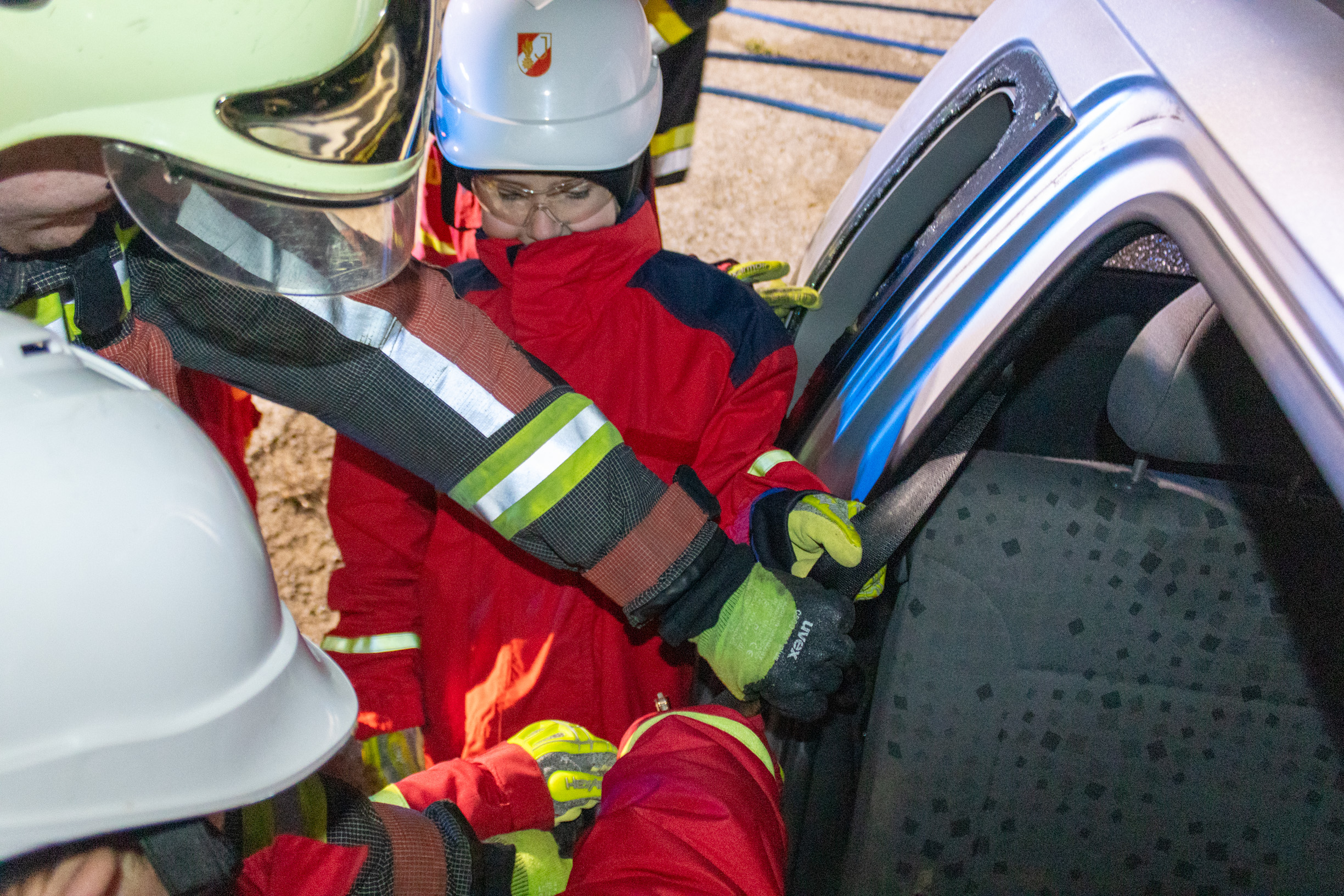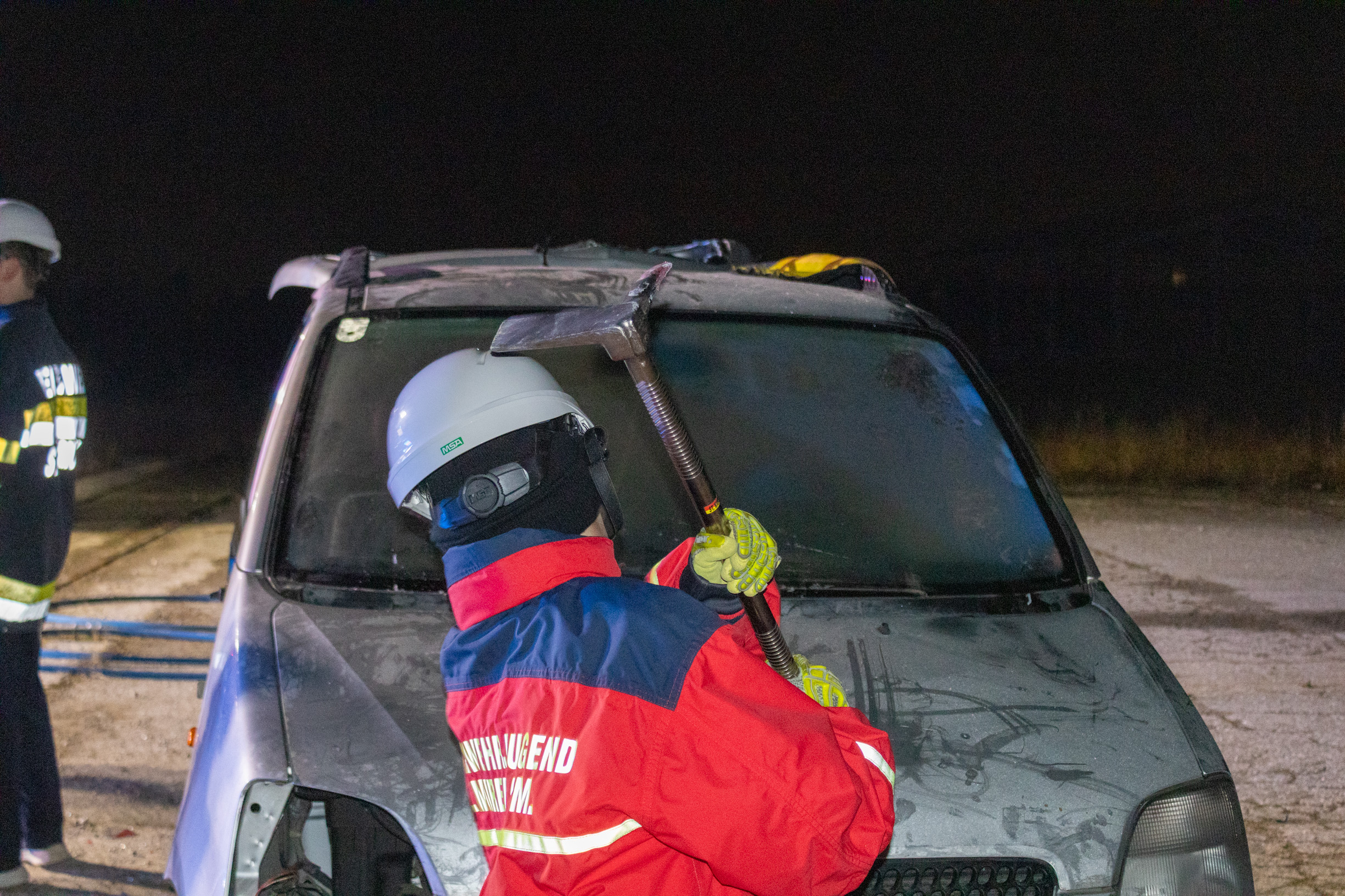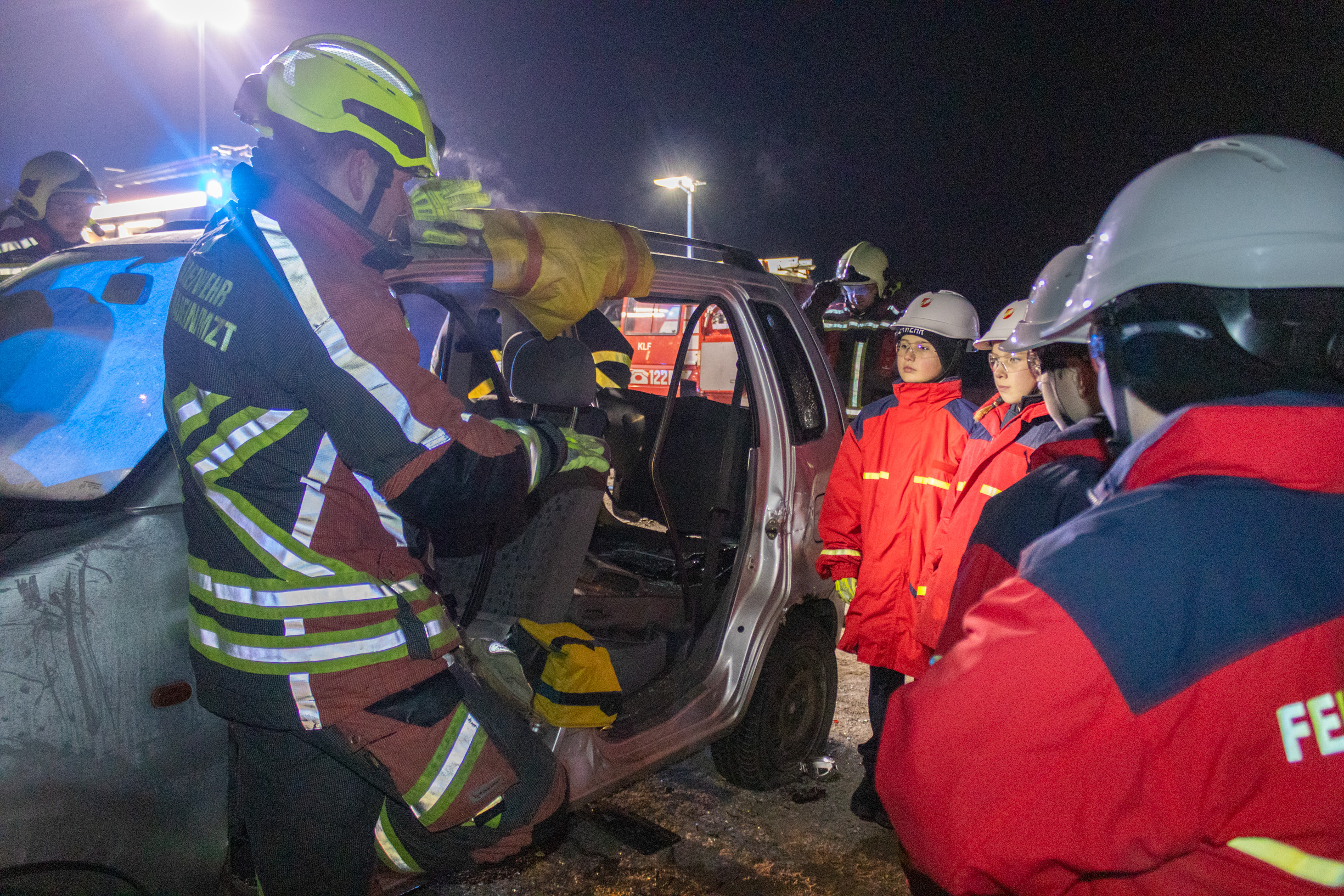 Aber nicht nur der Brandeinsatz wurde beübt, sondern auch ein Verkehrsunfall mit eingeklemmter Person.