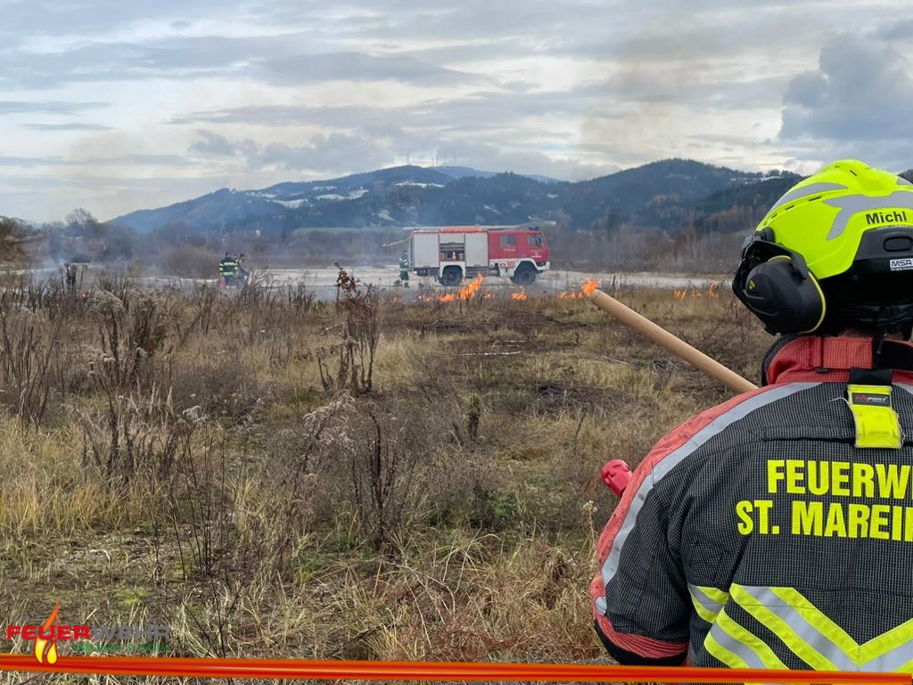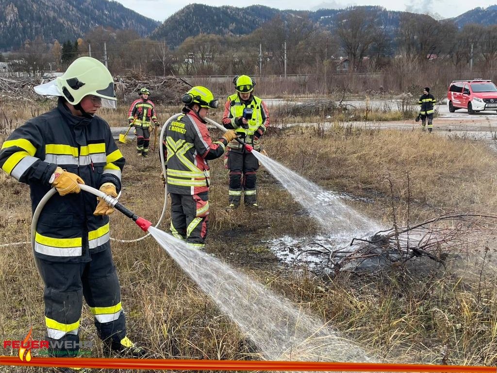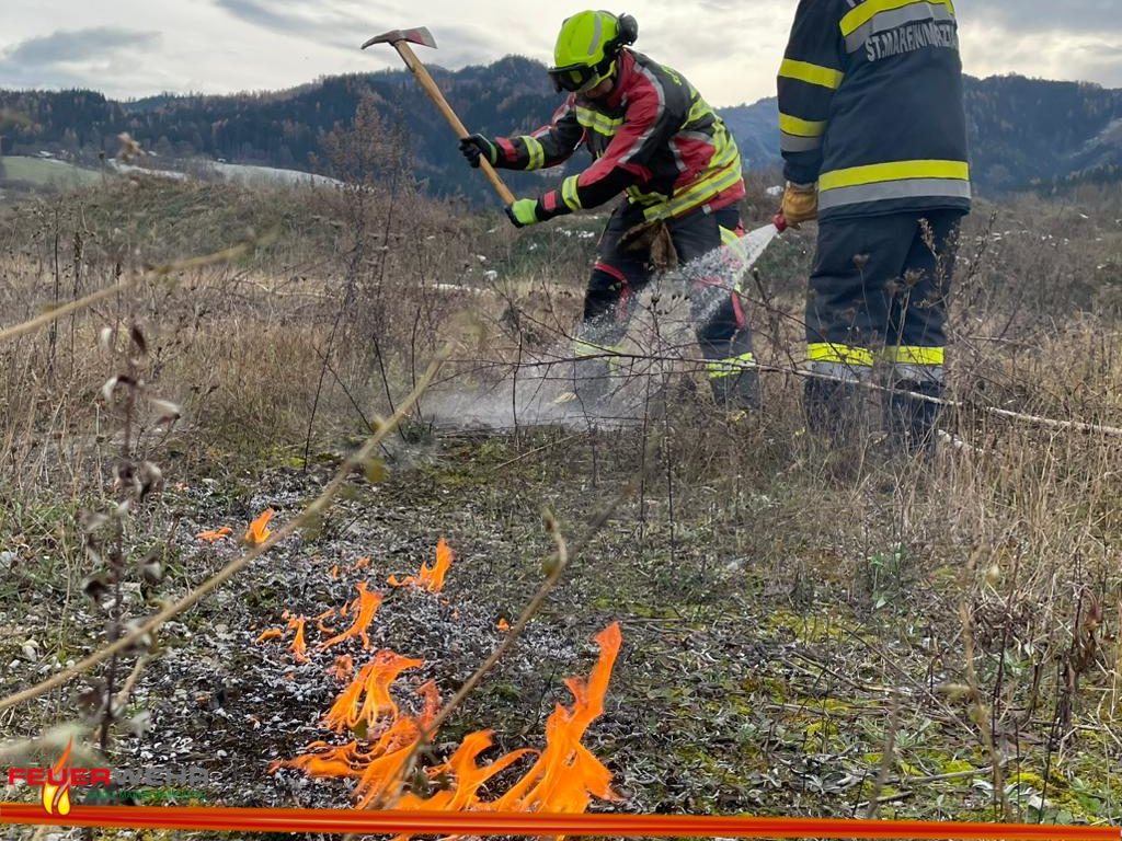 „Vegetationsbrand in einem Firmengelände“ lautete der Übungseinsatzbefehl für die Feuerwehr Sankt Marein im Mürztal und Feuerwehr Frauenberg.