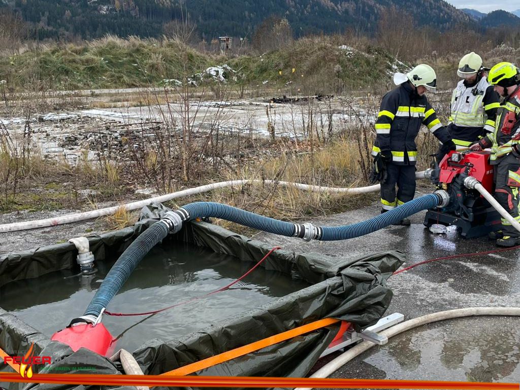 Feuerwehr St.Marein/Mzt mot HLF4 und LKW-Kran mit 10 Mann