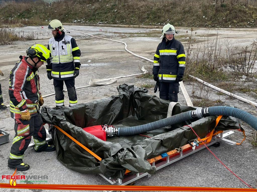 Von der Feuerwehr St.Marein/Mzt beteiligten sich 8 Mann mit HLF4 und LKW – Kran an der Übung.