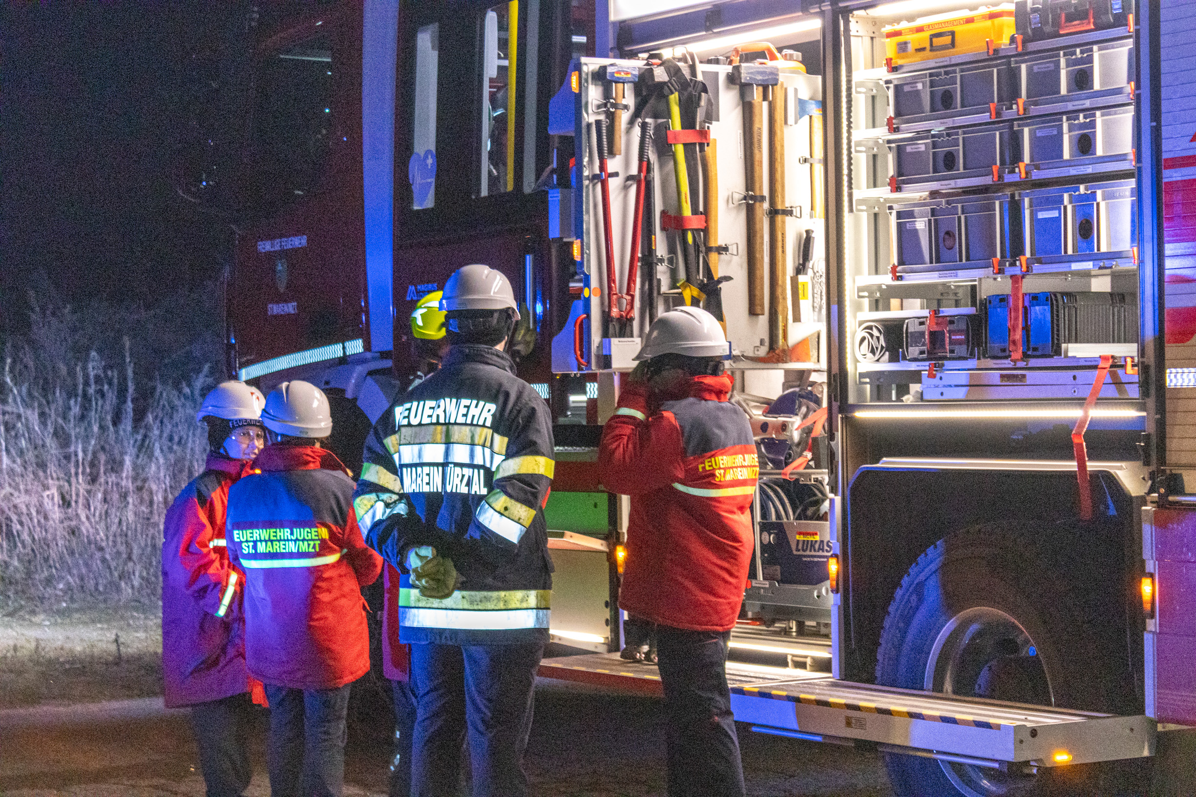 Seitens der Feuerwehr St.Marein/Mzt wurde unter anderem der Innenangriff, die Menschenrettung, die hydraulische Ventilation sowie ein Fahrzeugbrand unter schwerem Atemschutz beübt.
