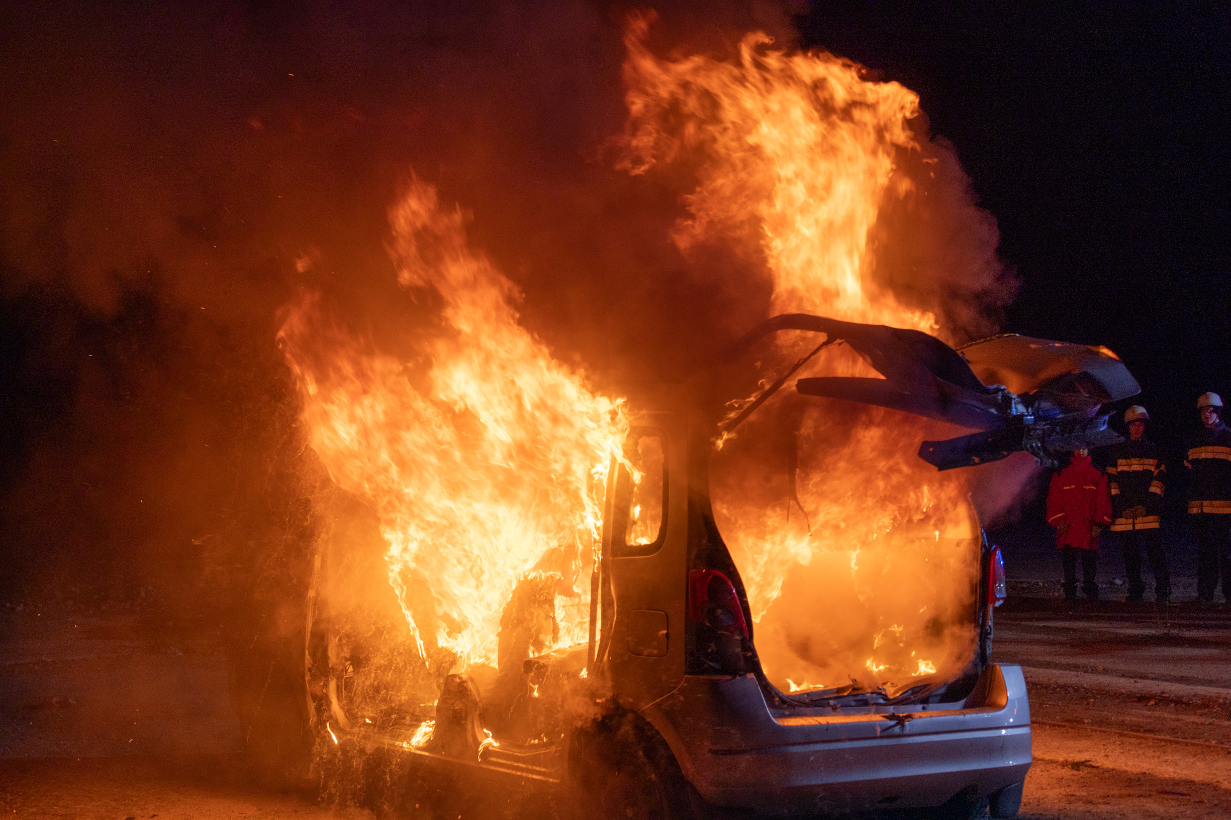 Danach wurde es heiß: Das Auto wurde angezündet und wir mussten schnell reagieren. Gemeinsam bauten wir eine Löschleitung auf und die Mannschaft führte die Löscharbeiten unter Atemschutz durch. Teamwork, Konzentration und sauberes Arbeiten waren dabei besonders wichtig.