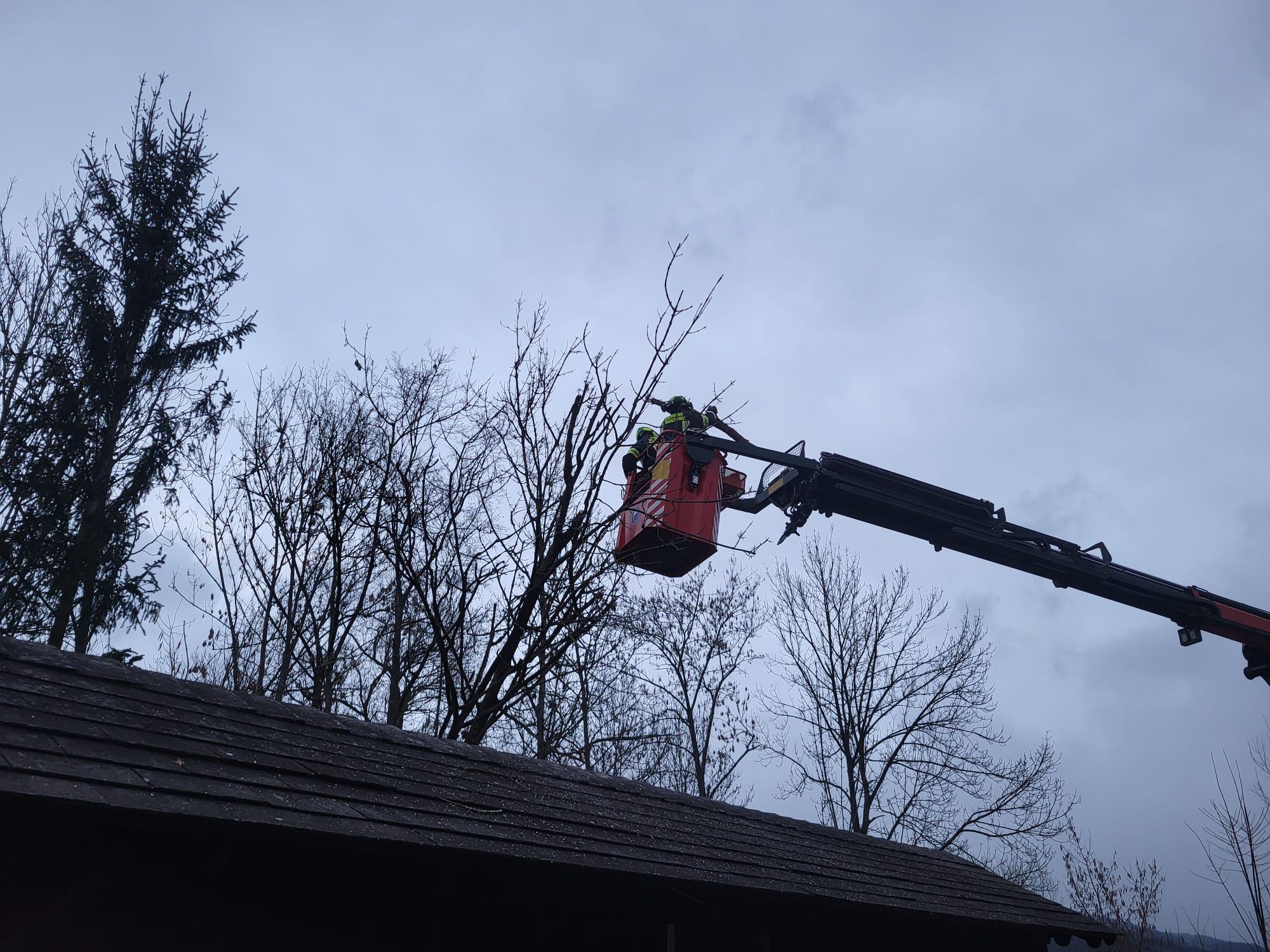 Mehrere Kameradinnen und Kameraden rückten umgehend zur Einsatzstelle aus. Mittels Motorsäge und entsprechendem Gerät wurde der umgestürzte Baum zerkleinert und von der Straße entfernt, sodass diese wieder sicher passierbar war. Zusätzlich wurde ein weiterer Baum, der durch den Sturm bereits stark beschädigt war und umzustürzen drohte, kontrolliert gefällt und beseitigt.