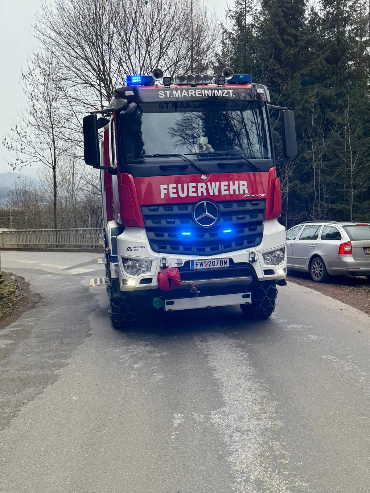 - Feuerwehr Sankt Marein im Mürztal mit HLF 4 und 7 Mann sowie weitere Kräfte im Rüsthaus.